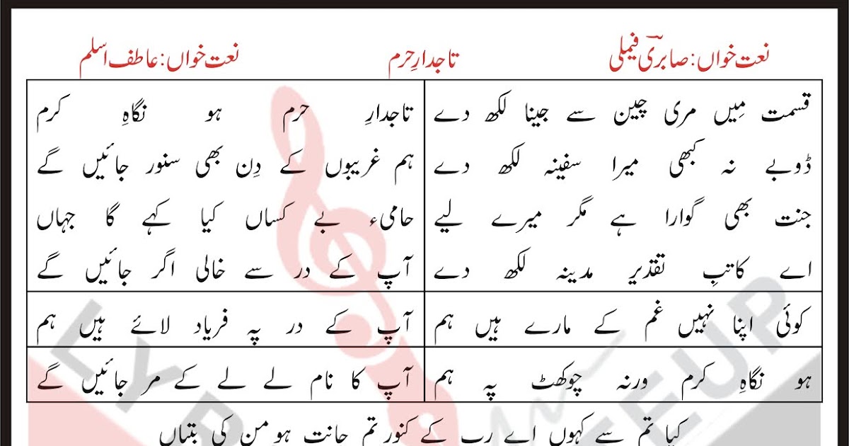 Atif Aslam Tajdar E Haram Lyrics In Urdu - Use the citation below to add these lyrics to your bibliography: Atif Aslam Tajdar E Haram Lyrics In Urdu : Use the citation below to add these lyrics to your bibliography: