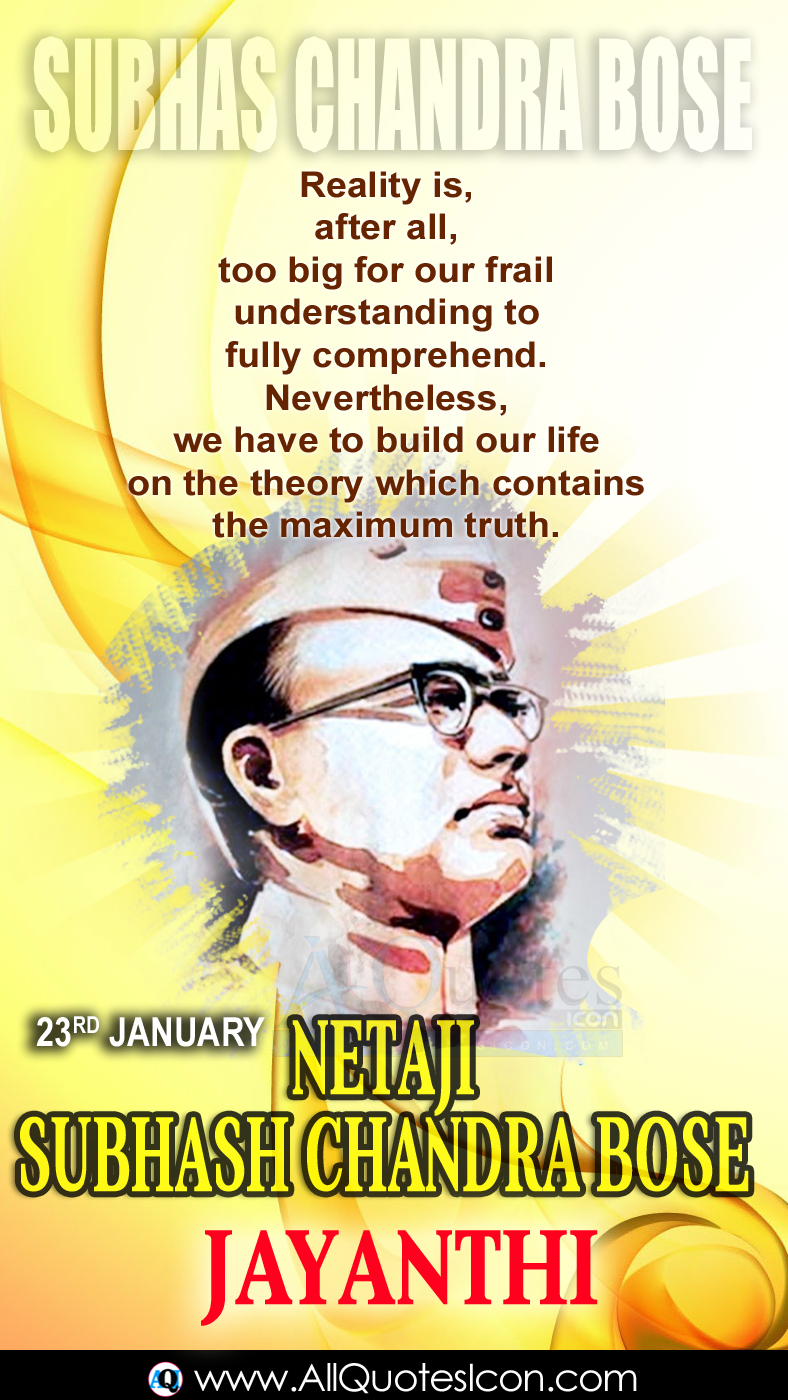 Subhas Chandra Bose Jayanthi Greetings Telugu Quotes Hd Wallpapers Best Netaji Subhas Chandra Bose Telugu Qutoes Birthday Wishes Images Www Allquotesicon Com Telugu Quotes Tamil Quotes Hindi Quotes English Quotes - Nevertheless, we have to build our life on the theory which contains the maximum truth.